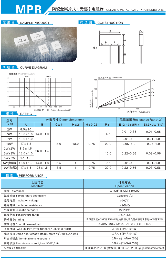 陶瓷金属片式(无感)电阻器